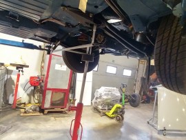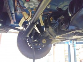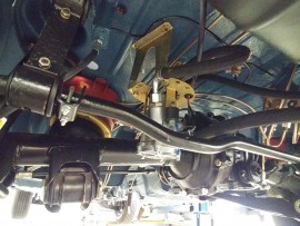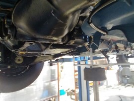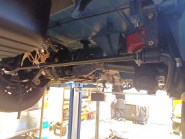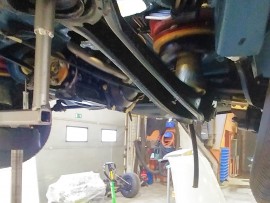 The Mercedes-Benz 300SEL 6.3 W109 restoration at Riga Master Workshop is progressing with the ongoing reassembly of the chassis. These photographs document the crucial installation and alignment of the rear axle. Following factory manuals, our technicians meticulously adjusted the axle and air suspension components to ensure precise geometry and ride height. The attention to detail is evident in the fully restored and correctly fitted suspension arms and air control valves. This precise work is fundamental for the car's dynamic performance.