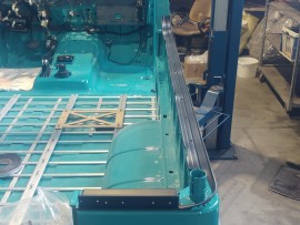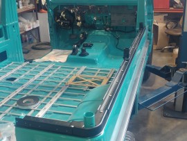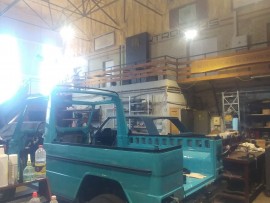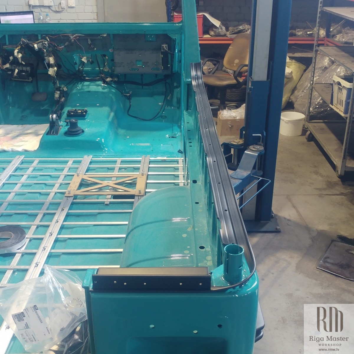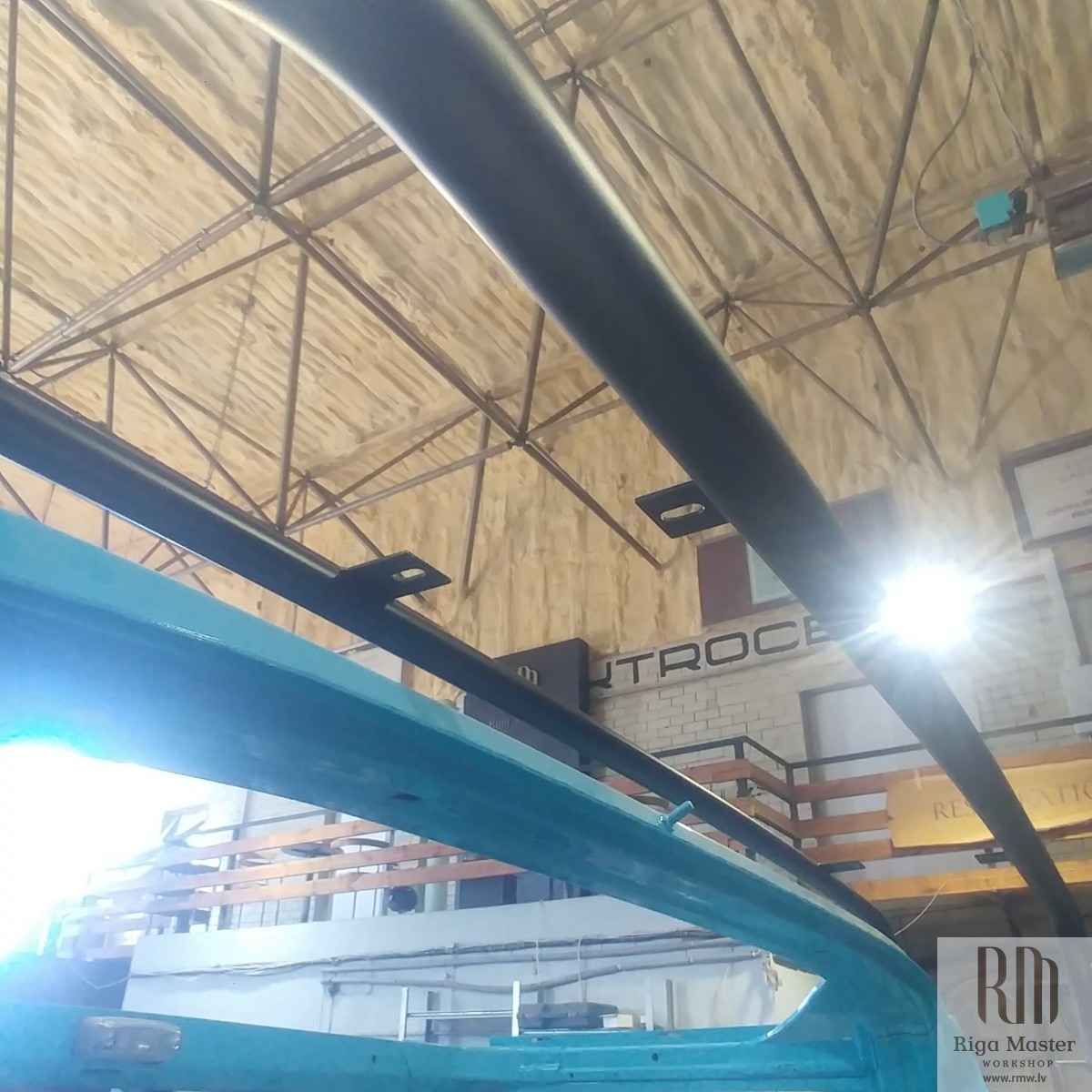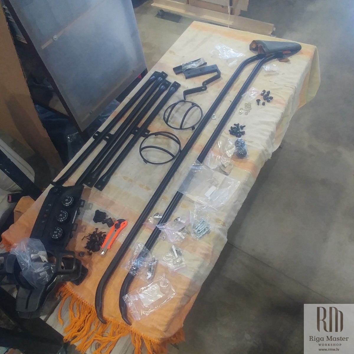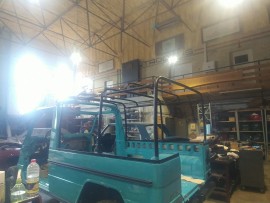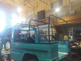As shown in the photographs, individual components were pre-assembled and checked for alignment before being bolted to the reinforced body pick-up points. Technical attention was given to the integration of protective plastic bushings and secure hardware to ensure structural rigidity and prevent future vibration wear. This installation completes the upper body profile, allowing for the subsequent fitment of the canvas covering.