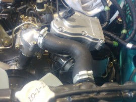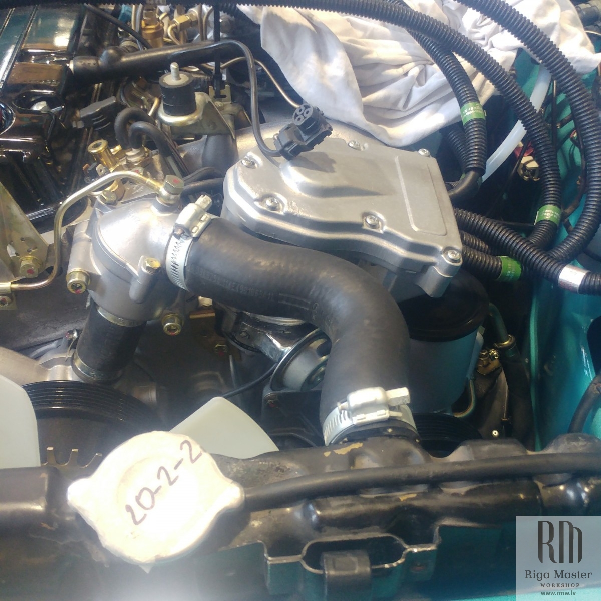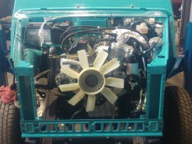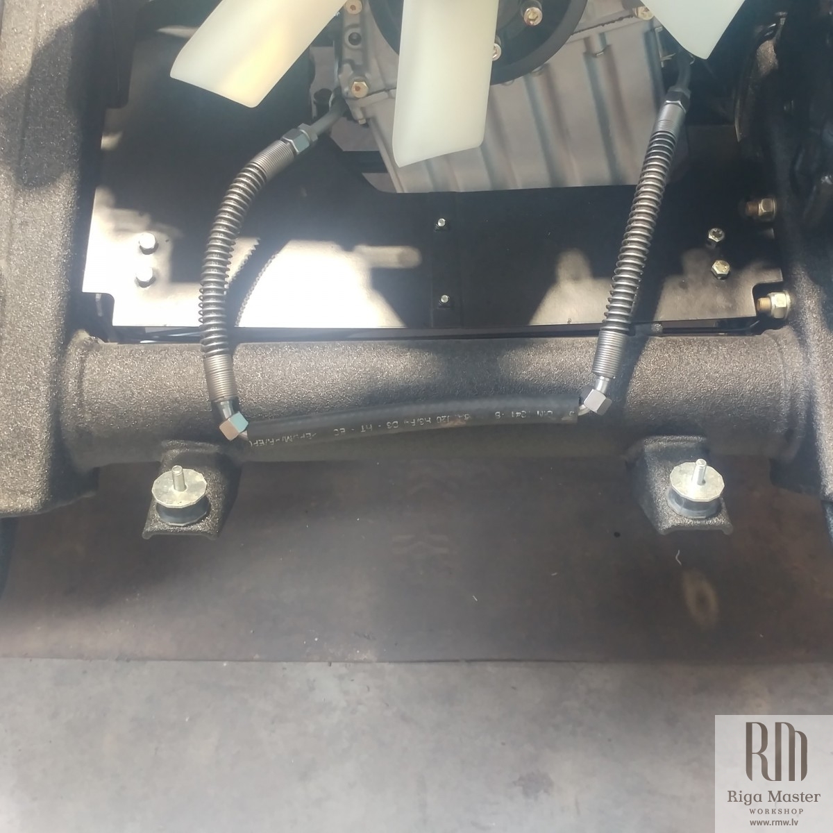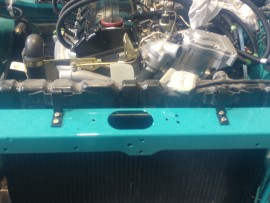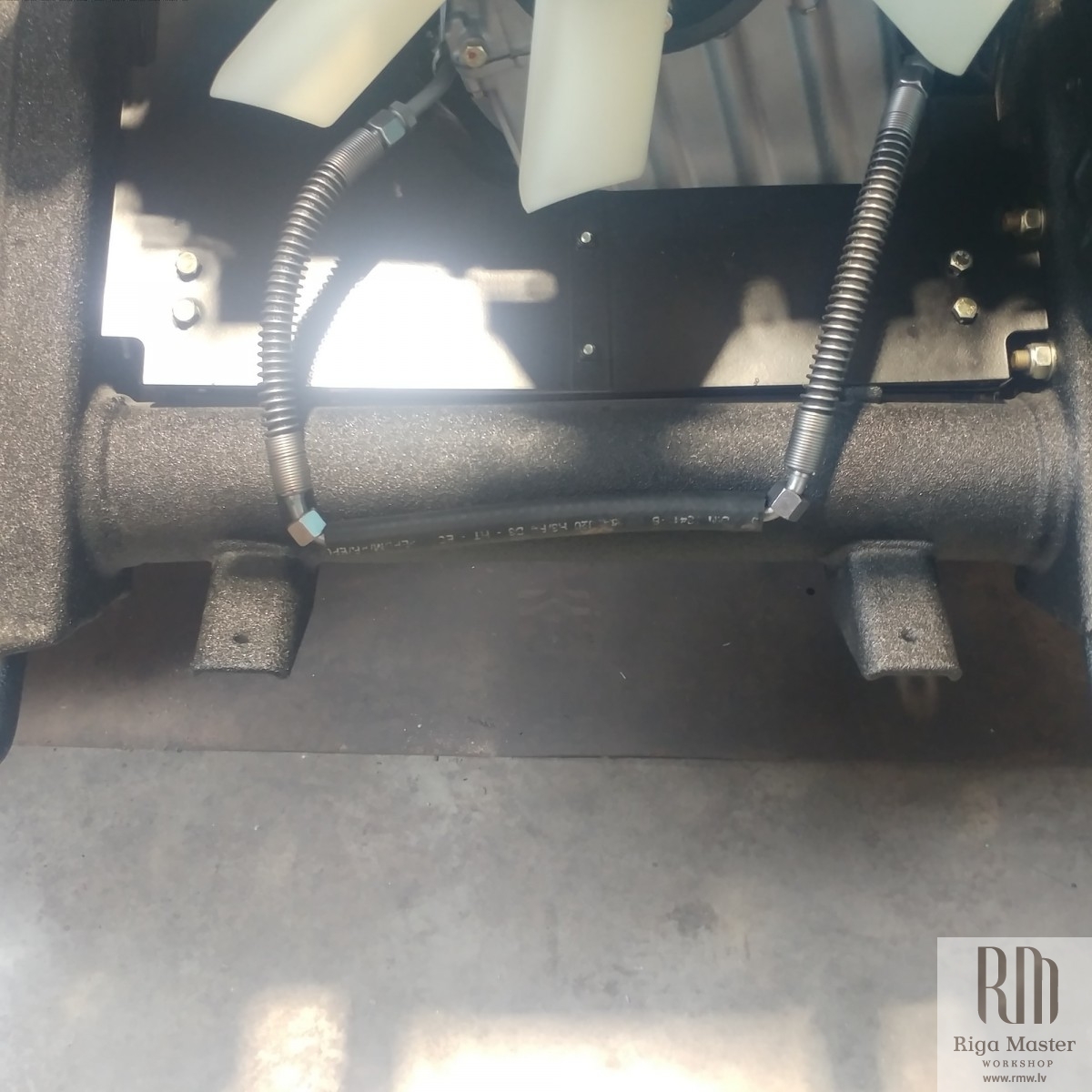 As documented in the photographs, the process included mounting the high-capacity cooling fan and securing all associated hydraulic hoses to the engine block. Technical attention was focused on the precise routing of the cooling lines and the installation of the expansion tank to ensure factory-specification pressure regulation. These completed works stabilize the vehicle’s mechanical foundation, allowing us to proceed with the final electrical and engine bay finishing.